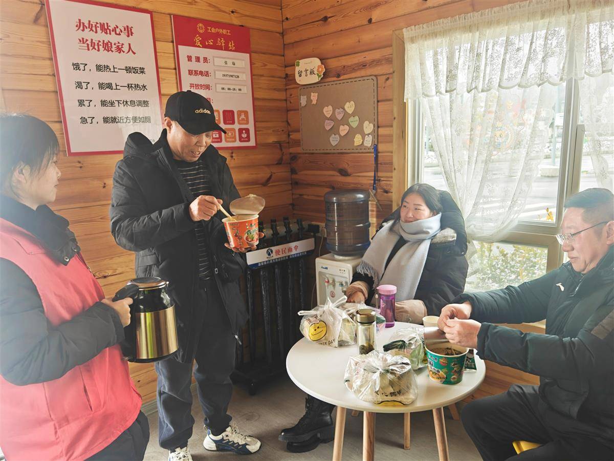 9时许,收费站闸口外雪花飞舞,一排标有“免费早餐”的不锈钢桶冒着热气,前来吃早餐、打开水、泡热茶的货车司机络绎不绝。“一早上送出300碗面条,看着司机朋友吃得香,我们食堂师傅也满满成就感。”叶敏说。