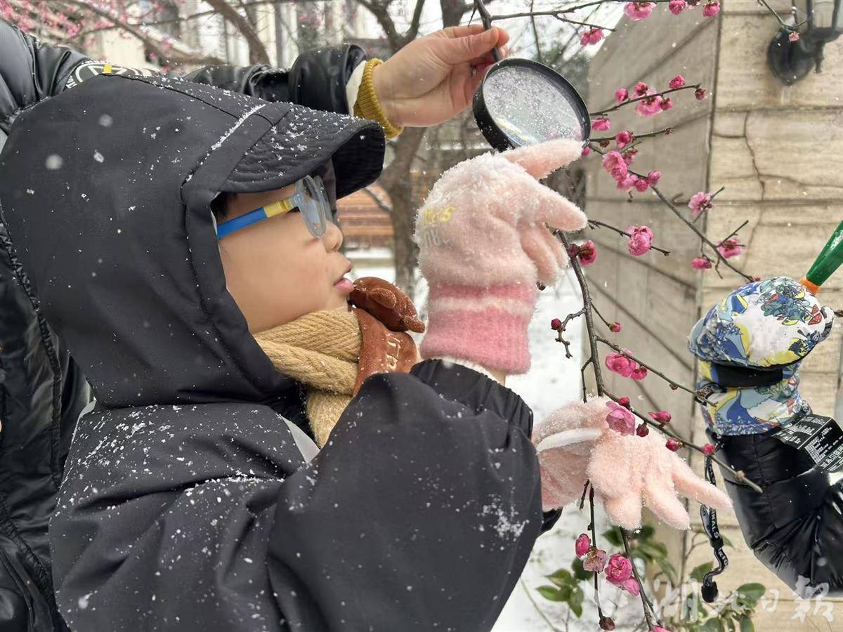 湖北日报讯(记者熊星星、通讯员邓珍)今日大雪虽停,武汉仍银装素裹。在这片洁白中,武汉的海童贝儿童成长中心,一堂户外课悄然展开。秦萍老师没有让孩子们留在温暖的教室里,而是带着他们走到户外,来到几株傲然绽放的梅花树下。