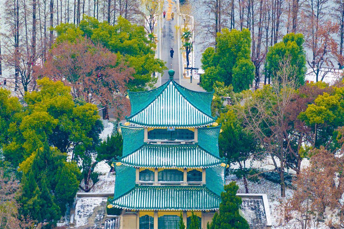 1月21日,降雪为武汉东湖披上皑皑白纱,这座“城市绿心”在冰雪雕琢下焕发出别样风情。听涛景区的水墨亭台在雪景中别具韵味,吸引着市民游客纷至沓来。(湖北日报全媒记者 任勇 摄)