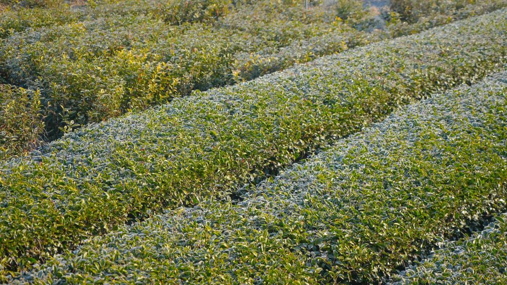 清晨,茶园基地霜露满园。新华社记者方亚东 摄