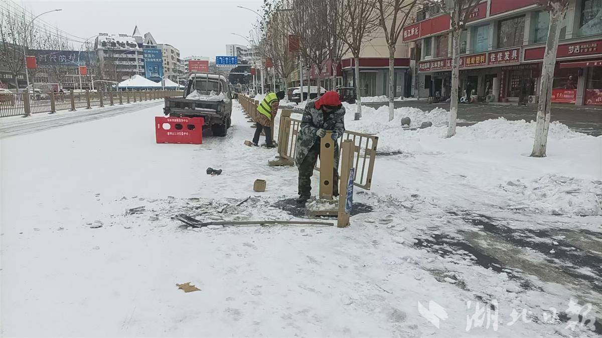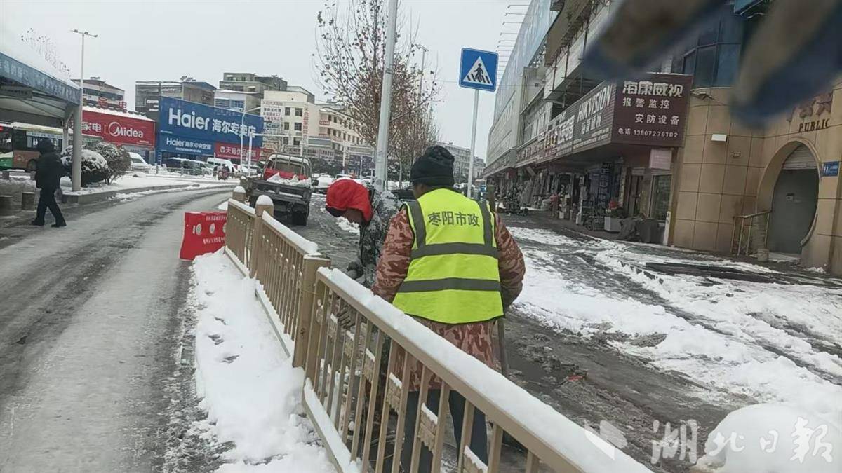 湖北日报讯(通讯员付宏才、徐学波、黄修峰)气温骤降,大雪纷飞,给市民的出行和安全带来诸多隐患。1月20日上午,枣阳市以雪为令,迅速组织城区各部门、各单位,采取“人工+机械”作业的方式,对城区主次道路、公园、广场、小区、社区开展扫雪除冰,及时消除积雪冰冻给市民出行和生产生活带来的不利影响。