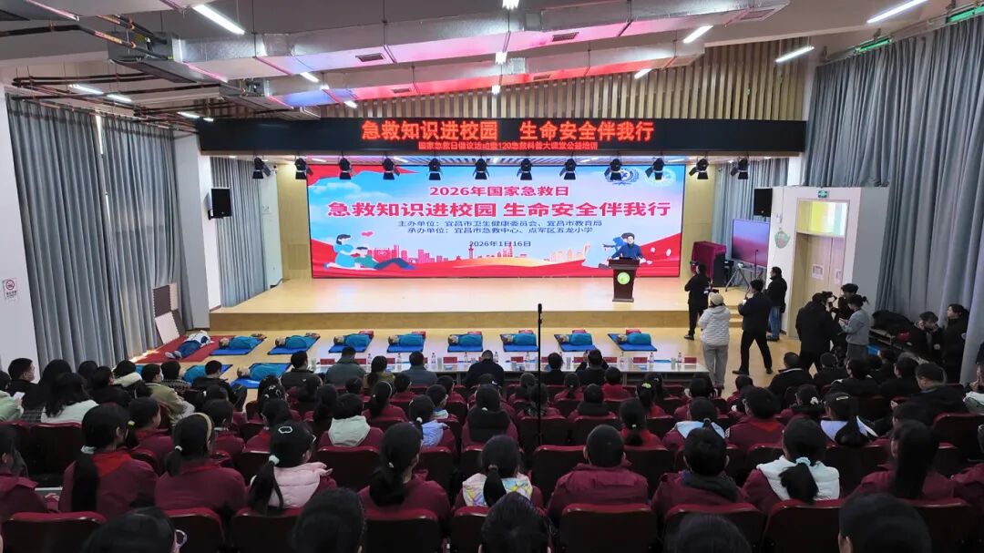 1月16日,宜昌市教育局、卫健委在点军五龙小学联合举行2026年宜昌市“国家急救日”倡议活动,近300名师生和医务工作者共同参与活动并开展急救培训。