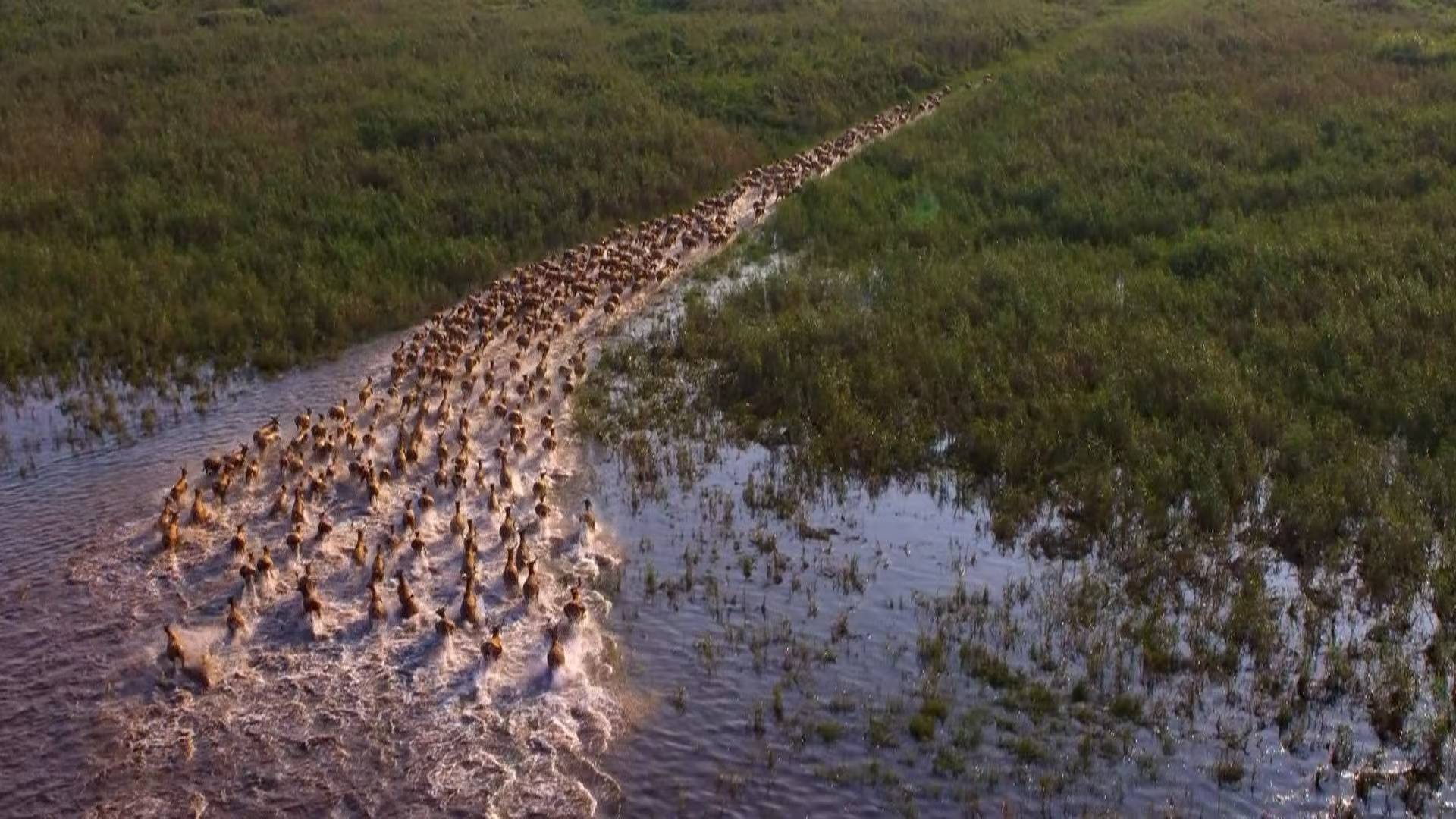 荆州石首市孕育出世界最大野生麋鹿种群。(荆州市文化和旅游局供图)