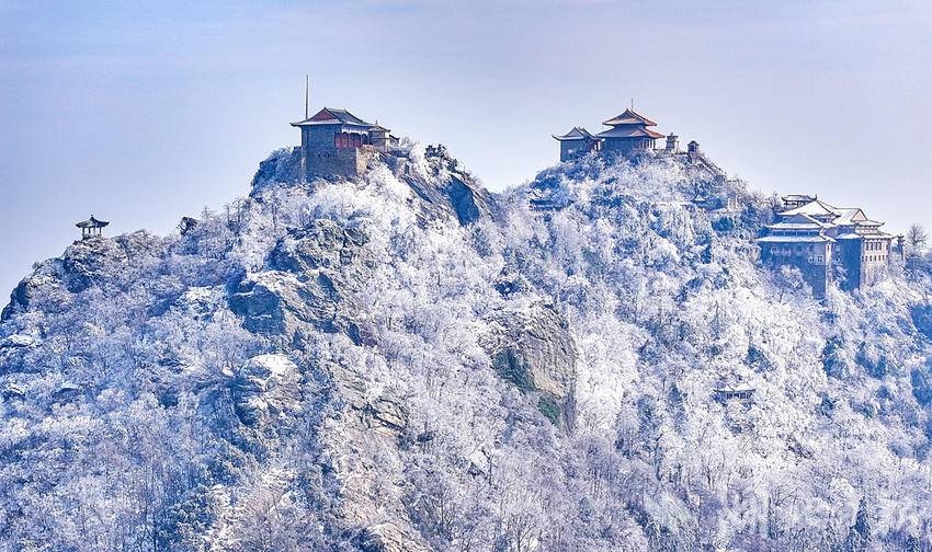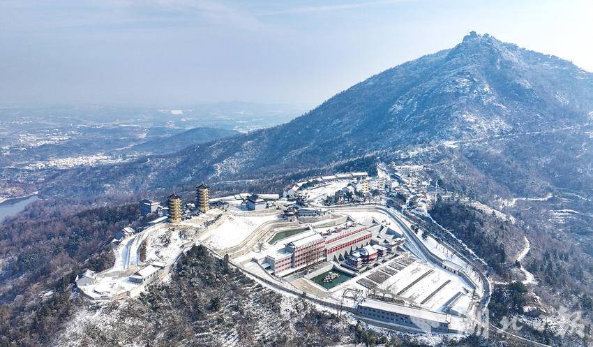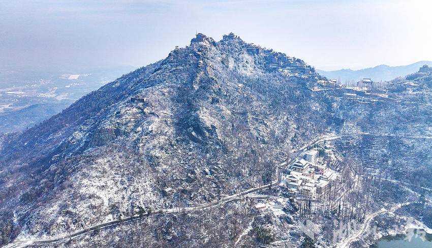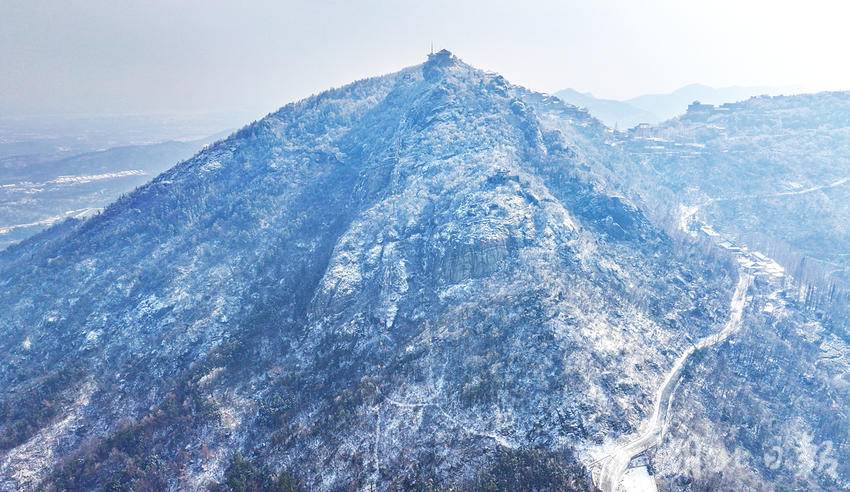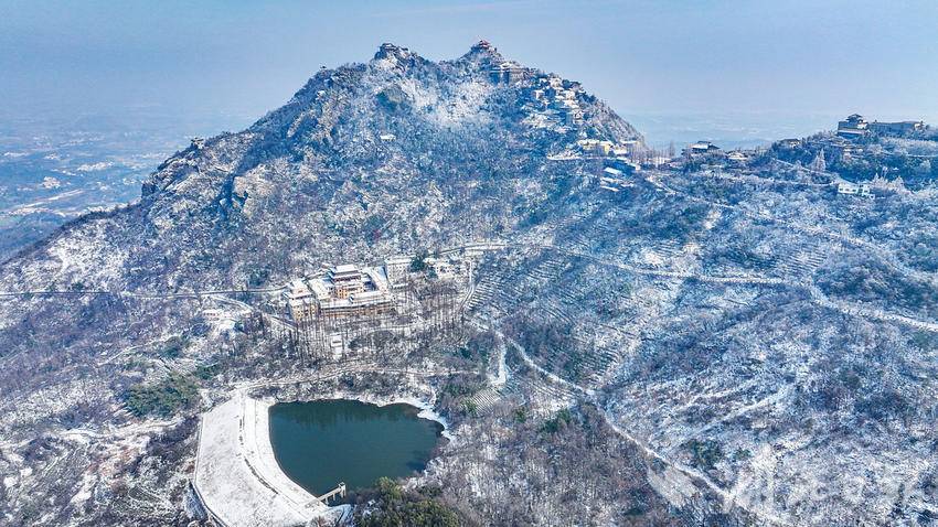 1月22日,鸟瞰银装素裹的武汉黄陂区木兰山。