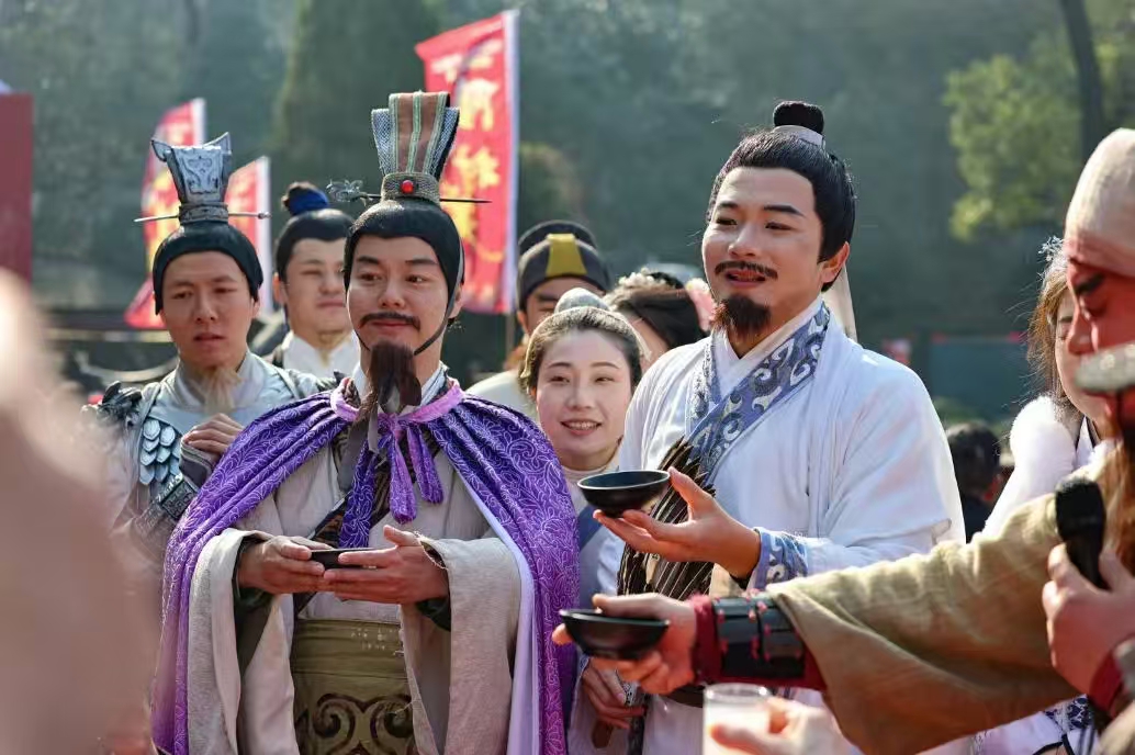 近日,古隆中景区推出106.9元/人的隆中村宴超值套餐,包括景区门票、观光车费用、隆中村宴,正在热销中。山水人文景区和地道农家宴的反差式组合,让游客直呼实惠。村宴排面拉满,水榭廊桥畔,旌旗飘扬,一句句“欢迎贤士”让宾客梦回三国。湖面上,薄雾氤氲间,羽扇纶巾的“诸葛先生”乘舟缓缓而来。村宴主打地道襄阳味,蒸圆子寓意团圆美满,蒸方肉象征富足安康,蒸鱼块尽显汉江鲜味……一张圆桌10人围坐,在热气腾腾中感受触手可及的诗与远方、暖胃暖心的人间烟火。“比团餐划算,好吃!”“在景区吃村宴,体验感独特!”游客竞相点赞。