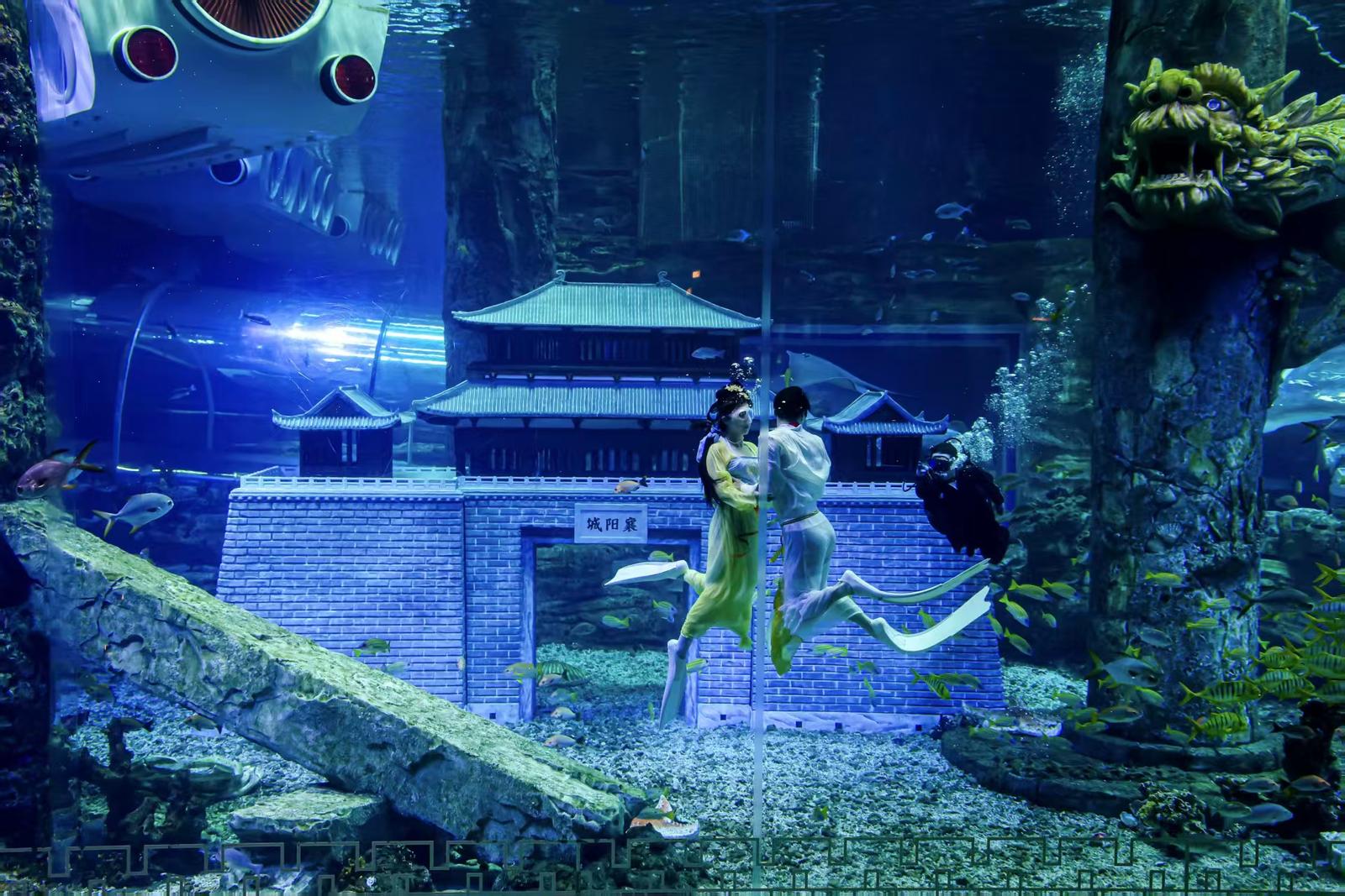 当武侠传奇照进现实,襄阳的侠义精神便有了破圈的力量。1月11日,在华侨城奇幻谷海洋馆,巨大的亚克力幕墙将这里打造成了一个色彩斑斓的水下世界。幕墙内黄金鲹成群结队,汇聚金色风暴;幕墙外小姐姐对着镜头,笑颜如花。除了邂逅各式各样的热带鱼,根据侠义襄阳故事改编的水下武侠幻境秀《汉水侠影》也是游客不容错过的精彩节目。