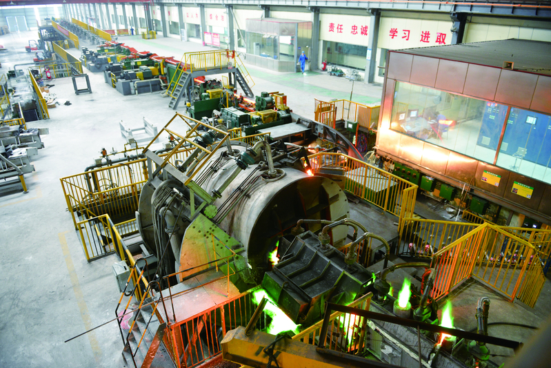 在晟祥铜业生产车间,智能化改造让生产过程高效清洁:1100℃竖炉烈焰升腾,铜板熔成赤红铜液,经精准流转、拉伸、成型,铸成直径8毫米的低氧光亮铜杆,源源不断供给电机漆包线、新能源汽车线束等战略性新兴产业。