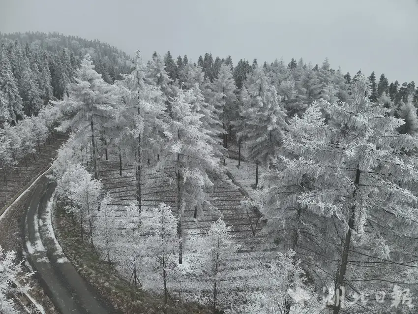 湖北日报客户端讯(通讯员杨明华)1月23日,咸丰县黄金洞乡水杉坪村这座青山被冰雪覆盖,成了银山。