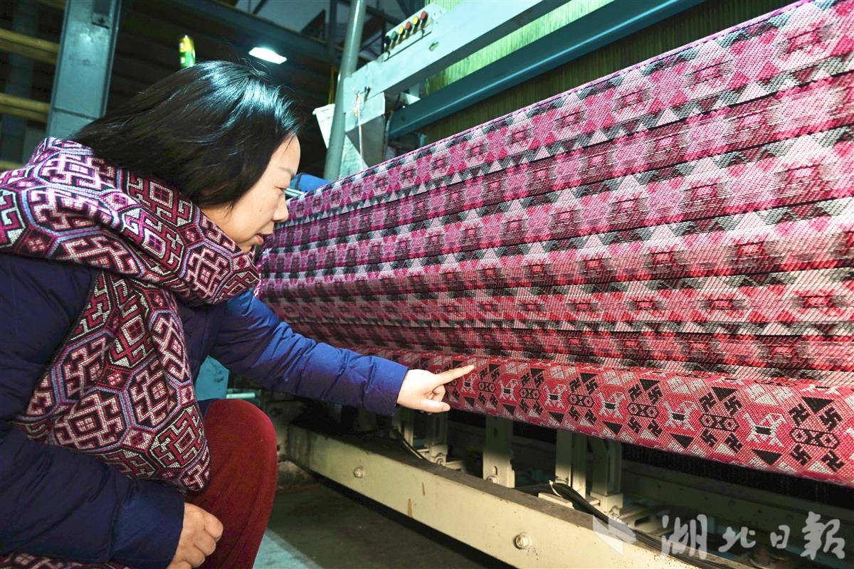 西兰卡普是土家语,意为“土花铺盖”,是国家级非物质文化遗产。为弥补其反面杂乱、只能单面使用的短板,田若兰带领公司技术团队,经过3年数百次的调试,于近日成功攻克西兰卡普双面织造技术难题,实现了反面无浮线,正反皆成景,既保留其传统特点与肌理,又打破单面使用束缚,将大幅提升其文创产品市场竞争力,为非遗传承注入新活力。目前该团队已完成小批量试制,即将产业化应用并纳入非遗教学。(视界网 梅珂 摄)