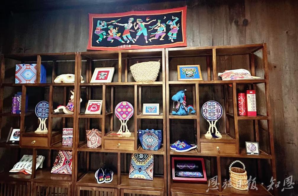 “宝宝们看这款‘万字纹’杯垫,寓意吉祥连绵……”在漫水皛漫农耕直播间,向惠玲和彭启玲化身主播,对着手机推介产品,漫水乡苏家坪村“网红书记”尹书文在一旁作指导。她们身后的展架上,西兰卡普产品琳琅满目,旁边还摆着土家腊肉、糍粑等农特产品。