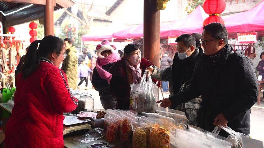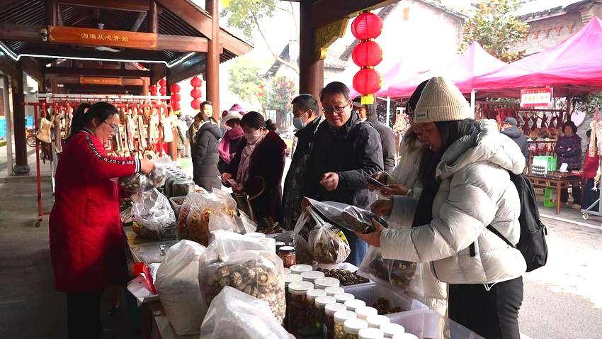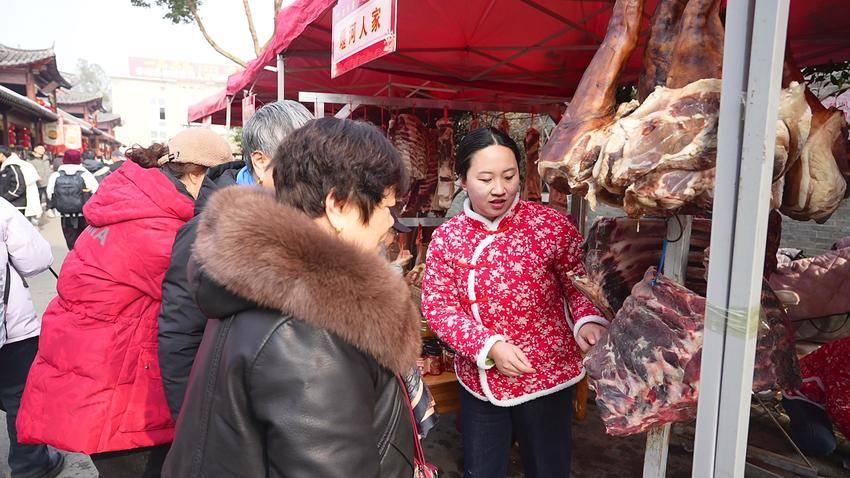 活动现场还设有书法家写春联送祝福、农耕非遗文化展示、诗词摄影作品联展、医疗专家义诊等环节。据统计,当日吸引周边市县游客超五千人次,线上线下总交易额达八百余万元。