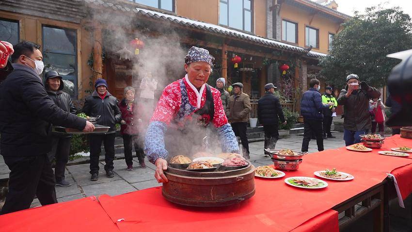 游客赵女士说:“年味很浓,菜的味道是在城市里什么大酒店都吃不到的,口味特别独特,下次还会再来。”