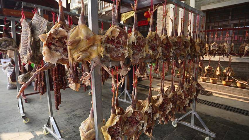 堰河村村民李默说:“今天来的人特别多,我们的生意也非常好,腊蹄子、灰鸡蛋、风干鱼、香菇木耳等都很畅销,像腊蹄子,我老公今天一上午就剁了二三十只。”