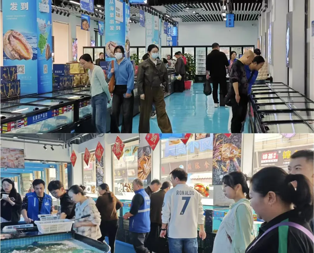 清晨还在俄罗斯海中的帝王蟹,当晚便能抵达武汉。国内养殖的鲍鱼、蛏子等通过稳定日供体系,保持价格亲民、品质如一。全程温控物流与现场蓄养系统相结合,确保海鲜到店后仍保持鲜活状态。