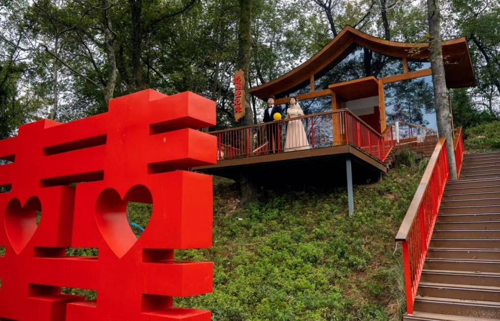 大众山城市休闲森林公园以空间品质优化提升为核心,构建起生态观光、休闲运动、婚恋婚庆、科普教育全龄全时需求服务体系。一期建成环湖栈道、登山步道、草坪市集等基础设施,二期重点打造爱恋中心、丛林树屋,创新引入婚姻登记、古风摄影等服务,形成“春有花、夏有荫、秋有景、冬有暖阳”的全季旅游目的地。截至目前,累计接待游客超85万人次,成为填补中心城区高品质绿色公共空间短板的标志性项目。
