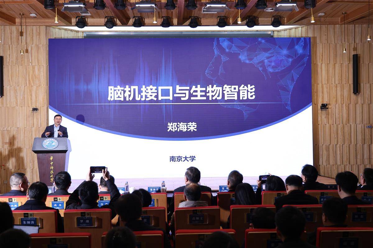 成立仪式后,郑海荣作题为“脑机接口与生物智能”的学术报告,深入剖析该领域的前沿动态与未来趋势,为研究院的科研发展提供学术指引。