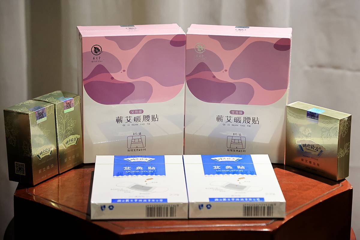除了智能艾灸产品,田群还带来了一款主打出口的经典艾条——“彼采艾”。该产品选用三年陈艾,沿袭古法工艺制作,完整保留了蕲艾道地品质。一同亮相的还有蕲艾暖腰贴、艾灸贴等多款热销产品,共同勾勒出蕲艾产业多元化、高品质的发展图景。