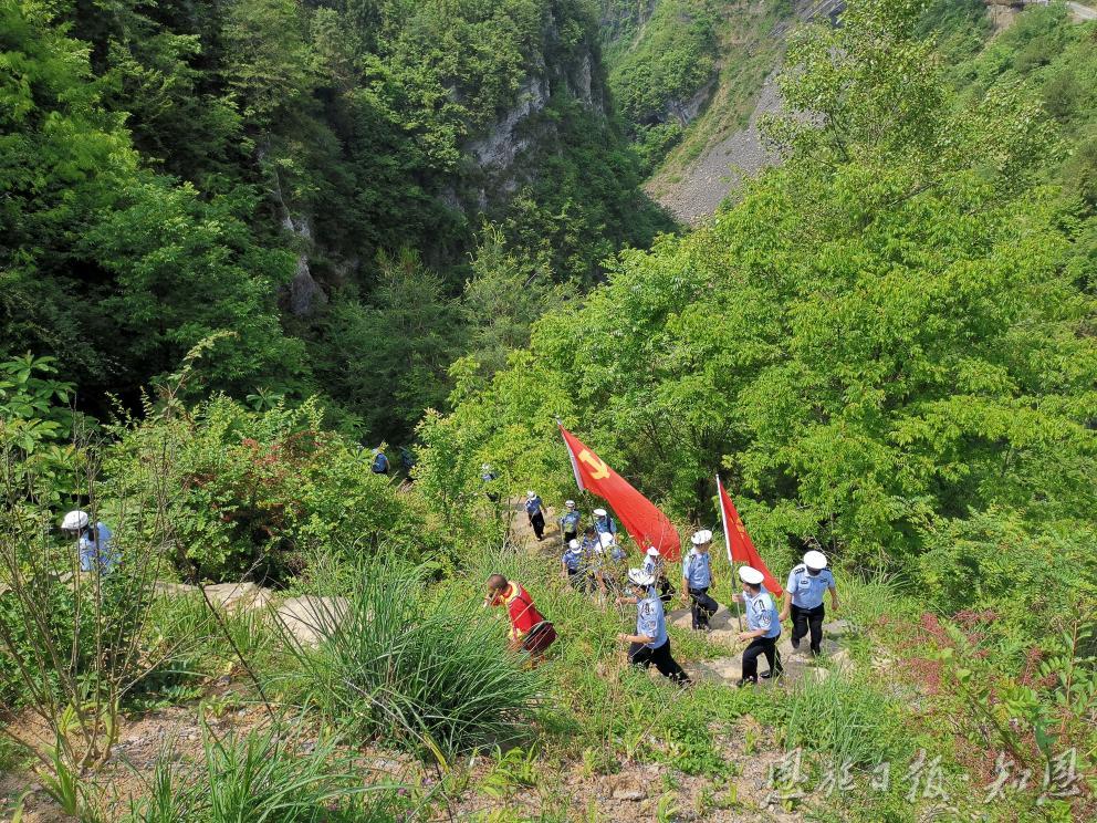 公安干警到店子坪村开展红色教育活动,重走当年出村的“羊肠小道。 (资料图)