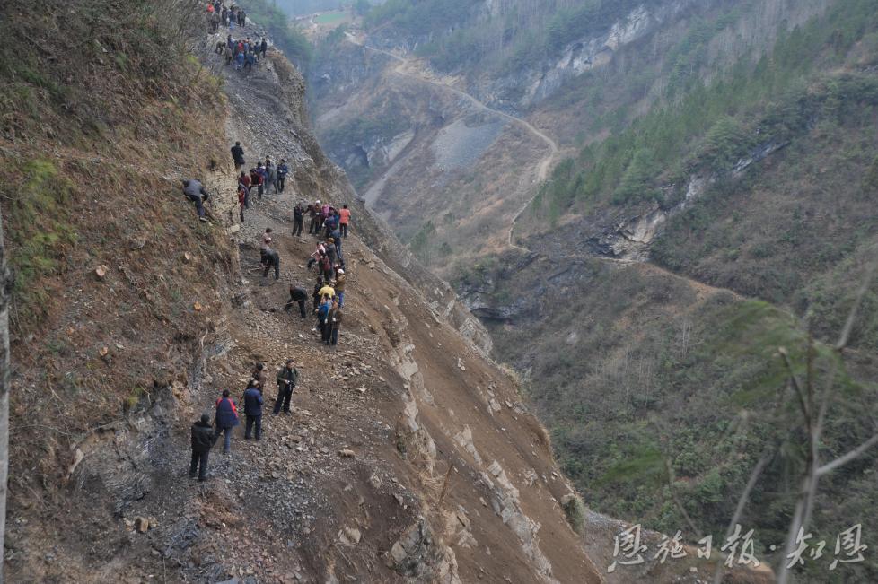 20年前,全村人就是在这样的绝壁上开始凿路。 (资料图)