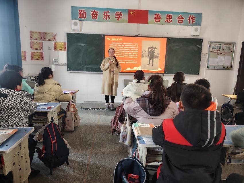 为让长征精神入脑入心,志愿者们创新宣讲形式,通过提问互动、情景模拟等方式,引导同学们沉浸式感悟长征的精神力量。“红军长征时啃树皮、过雪山,张宇烈士在火场逆行,他们都在最艰难的时候选择坚持,我们在学习中遇到难题,是不是也该勇敢面对?”志愿者的提问引发全场共鸣,同学们纷纷举手分享感悟。聂紫涵动情地说:“张宇叔叔是我们庙滩的英雄,长征路上的红军战士也是英雄,我要向他们学习,上课认真听讲,遇到困难不退缩,走好自己的‘小小长征’路。”