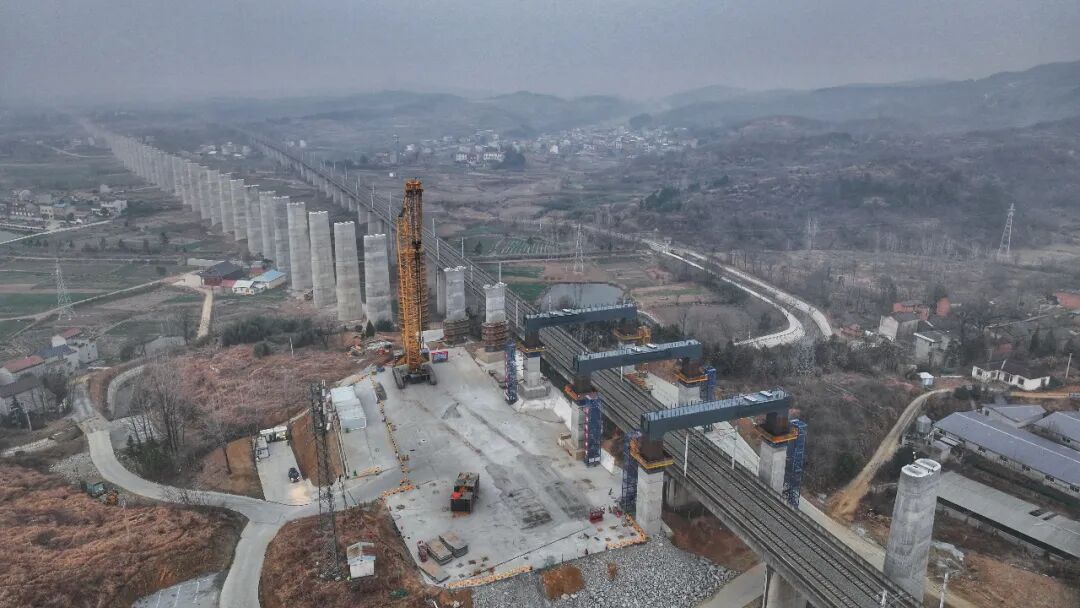 合武高铁建设工地。(湖北日报通讯员 王飞辉 田旭 摄)