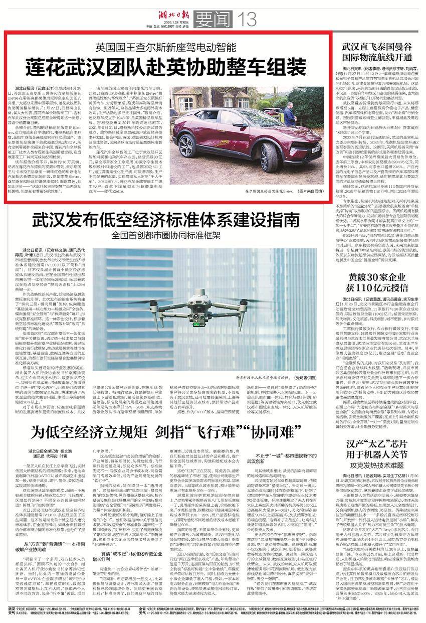 1月28日,湖北日报要闻版报道:英国国王查尔斯新座驾电动智能 莲花武汉团队赴英协助整车组装