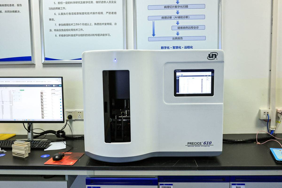 更深刻的变化还发生在诊断室内。在英山县人民医院病理中心,AI系统如同一位不知疲倦的“智能助理”,能快速在数字切片上标出可疑区域,将单张阅片时间从原来的5至7分钟压缩到约2分钟。
