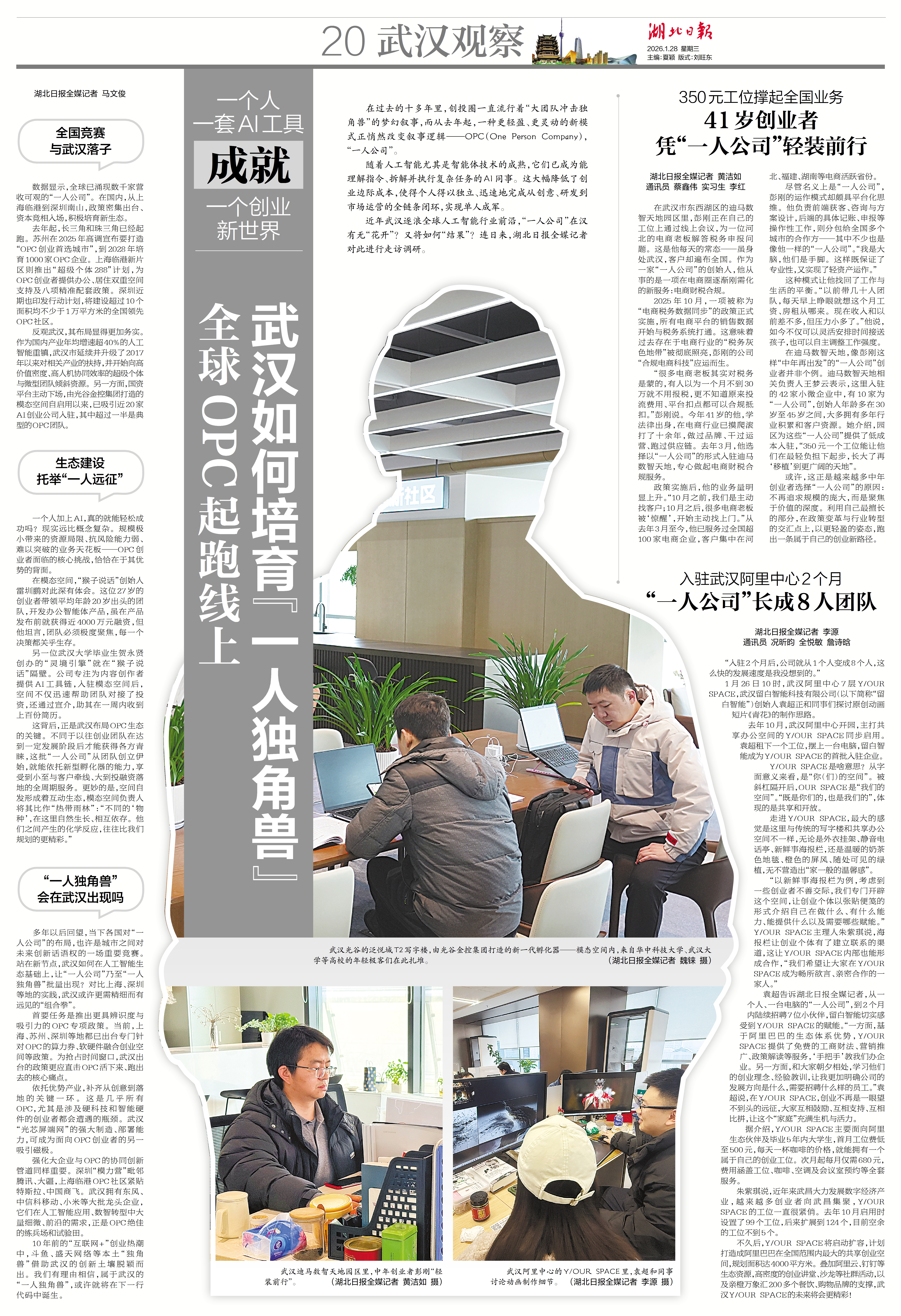 近年武汉逐浪全球人工智能行业前沿,“一人公司”在汉有无“花开”?又将如何“结果”?连日来,湖北日报全媒记者对此进行走访调研。