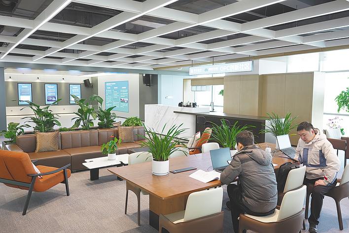 模态空间内,创业者正在沟通合作。(湖北日报全媒记者 马文俊 摄)