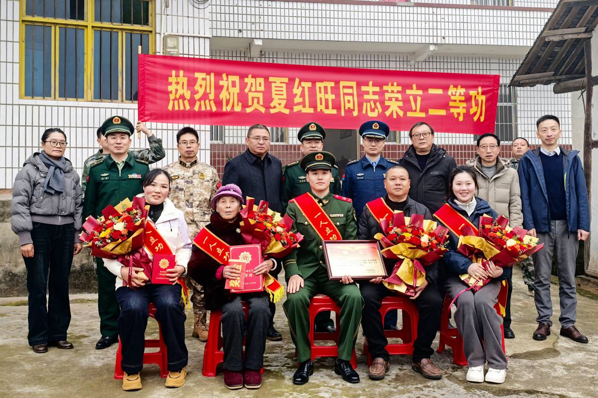 1月27日上午,武警湖北总队襄阳支队联合梁平区人武部、退役军人事务局等相关部门,将二等功喜报送到警士夏红旺的家中,与家属共享这一荣光和喜悦。