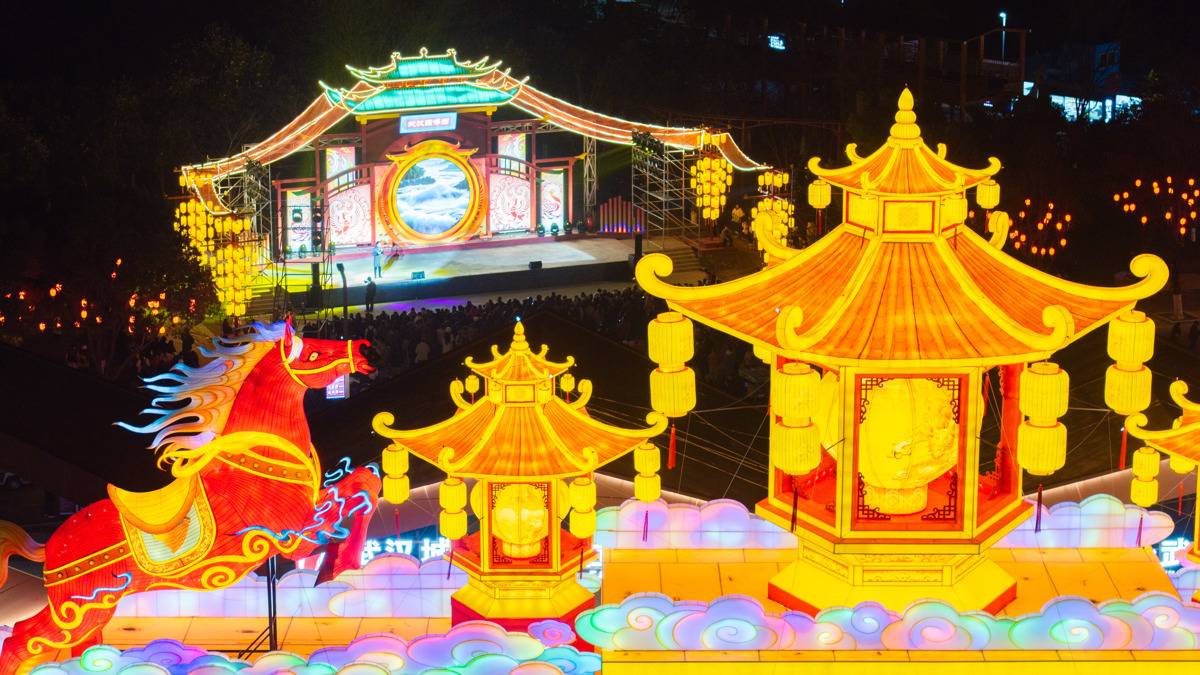 2026年1月28日晚,“万马奔腾贺新春・千灯璀璨耀江城”第十届武汉园博园花灯会正式亮灯,为市民游客献上一场融合文化底蕴、科技光影与民生温度的新春文化盛宴。(湖北日报全媒记者 何宇欣 通讯员 袁博 摄)
