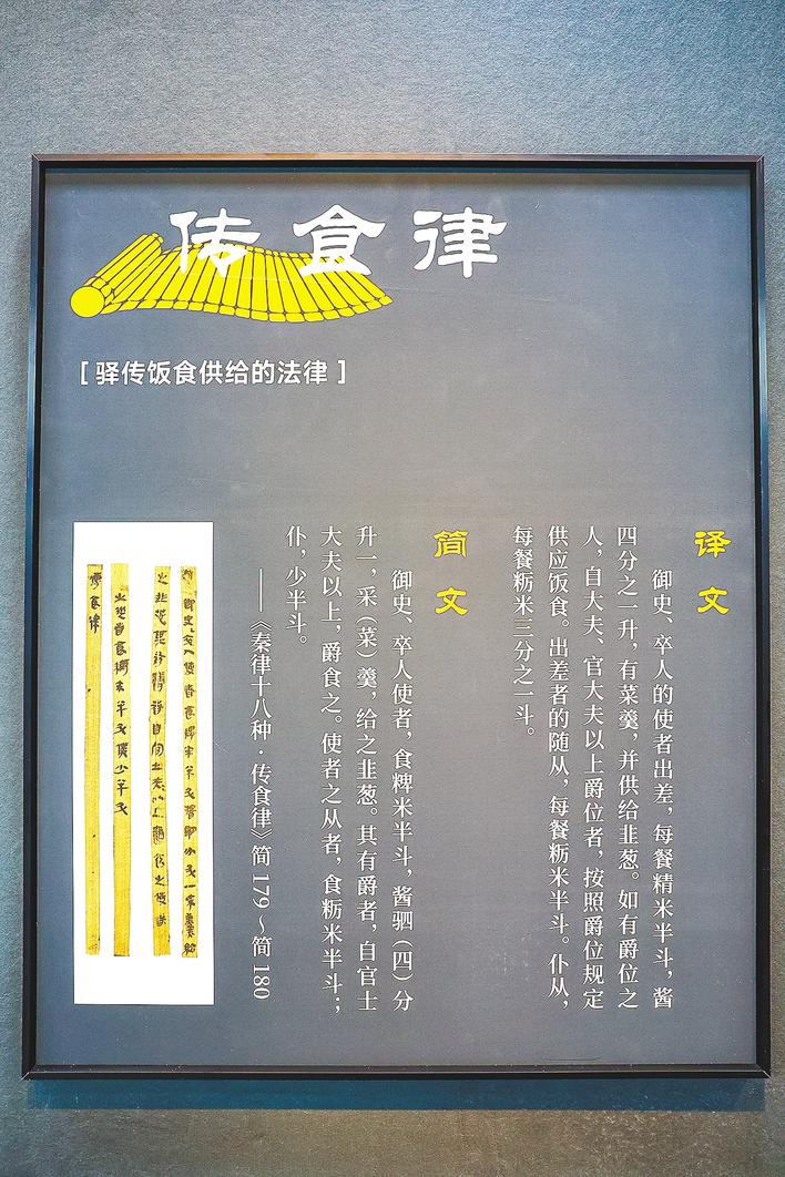 云梦睡虎地秦简《传食律》内容。(湖北日报全媒记者 倪娜 摄)
