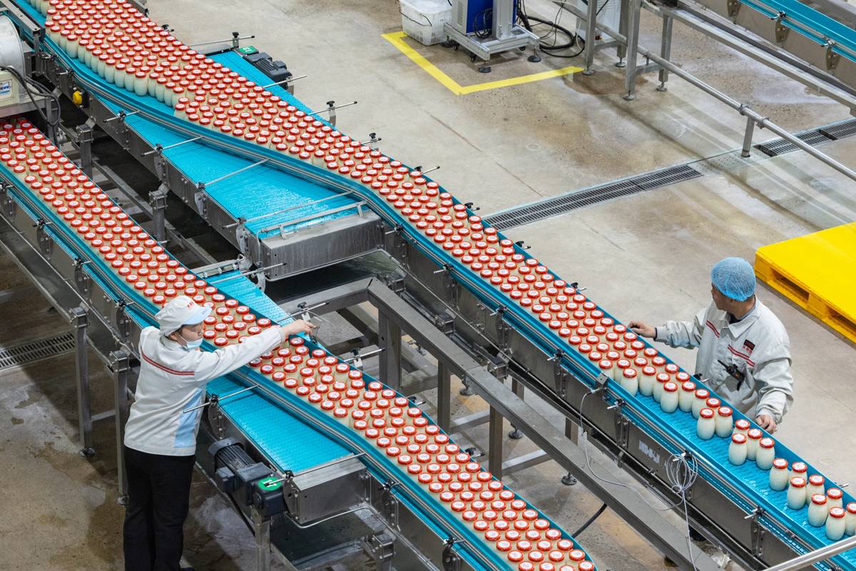 米婆婆公司生产线上,米酒产品排成了长龙。(湖北日报全媒记者 倪娜 摄)
