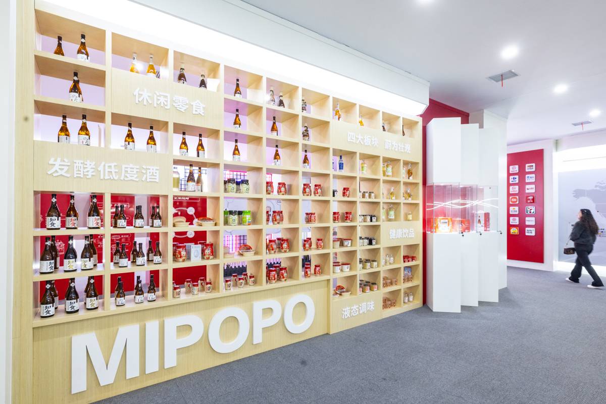 米婆婆公司产品展示柜上,米酒产品琳琅满目。(湖北日报全媒记者 倪娜 摄)