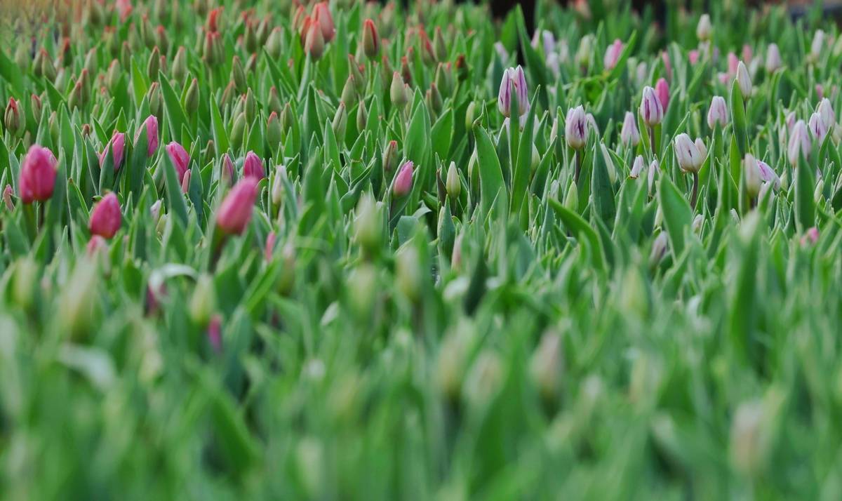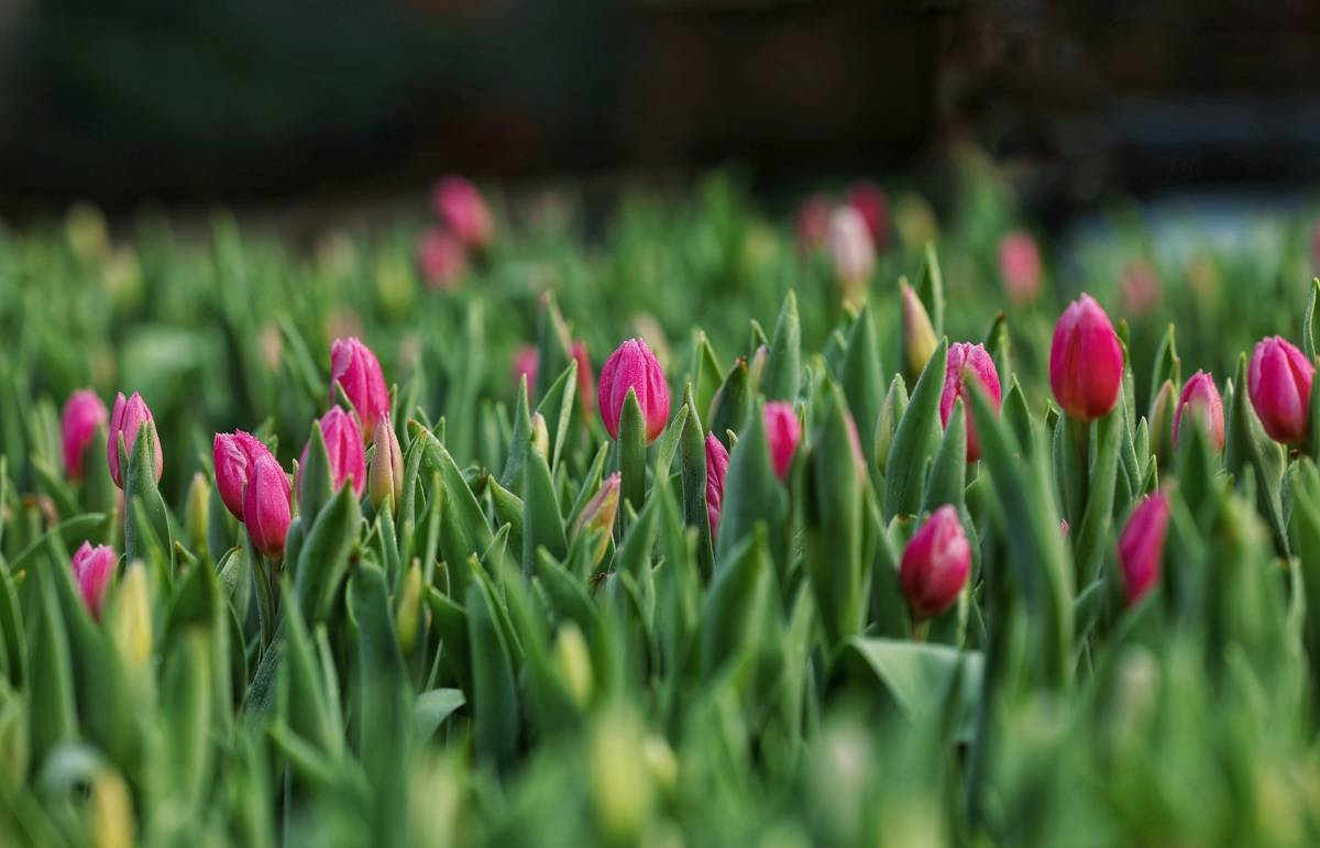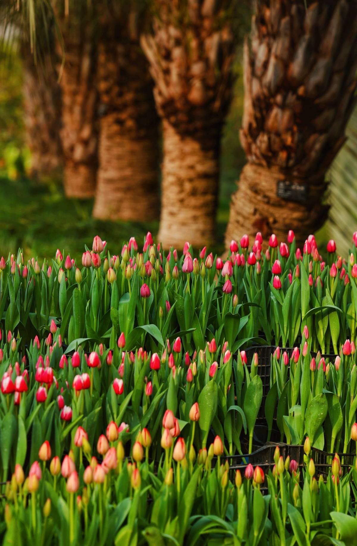 目前,大部分郁金香已经显色,再过几天,这里就会变成灿若云霞的花海。