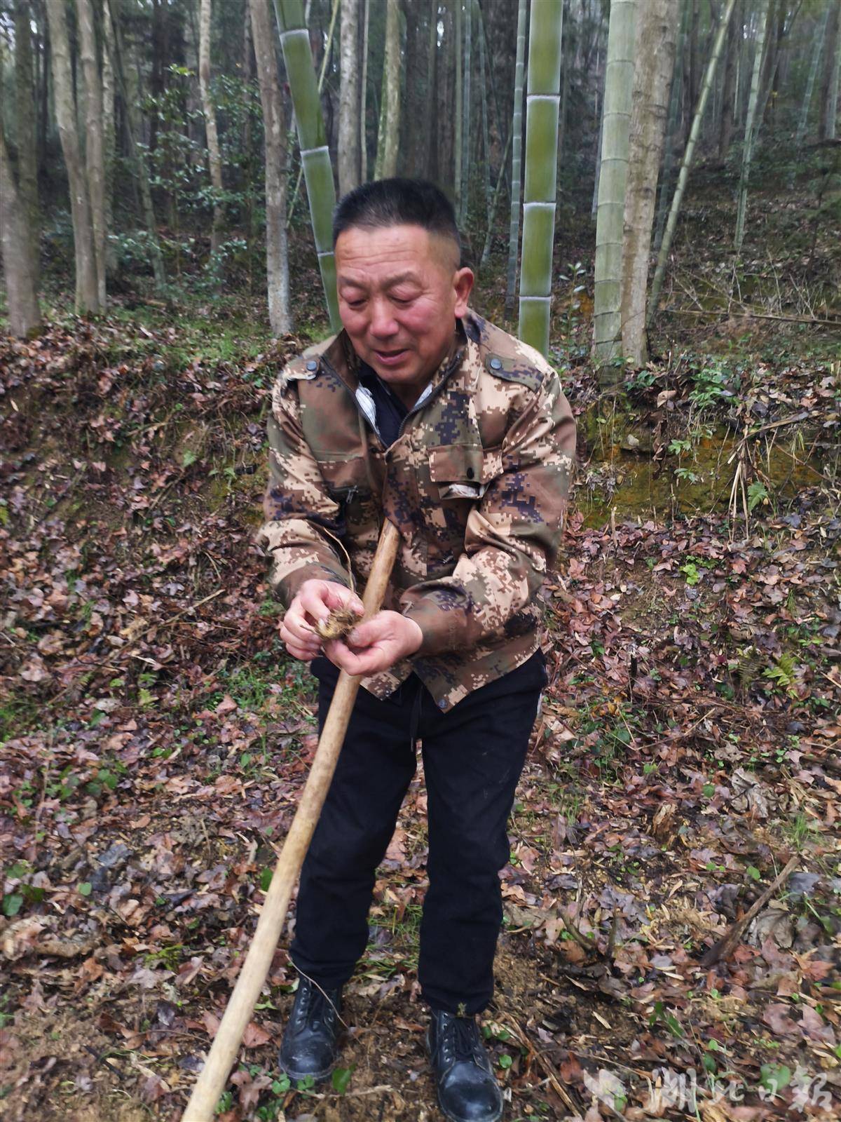 只见,他踩过露水打湿的落叶,俯身,拨开一层腐殖土,一截姜黄色的根茎露了出来——肥厚,饱满,在晨光里泛着温润的光泽。
