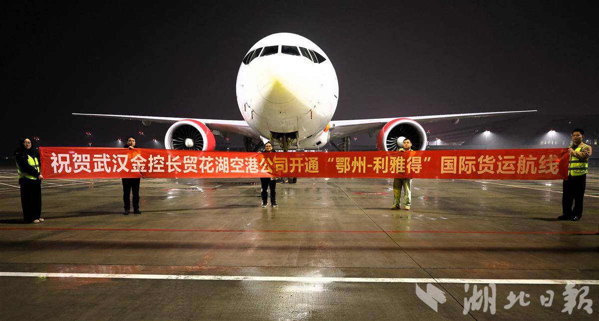 湖北日报讯(记者周鹏、通讯员卢熠、王星予)1月29日晚,一架满载服装等货物的波音777全货机从鄂州花湖国际机场腾空而起,直飞沙特阿拉伯利雅得哈利德国王机场。这标志着“鄂州—利雅得”全货运定期航线正式开通。