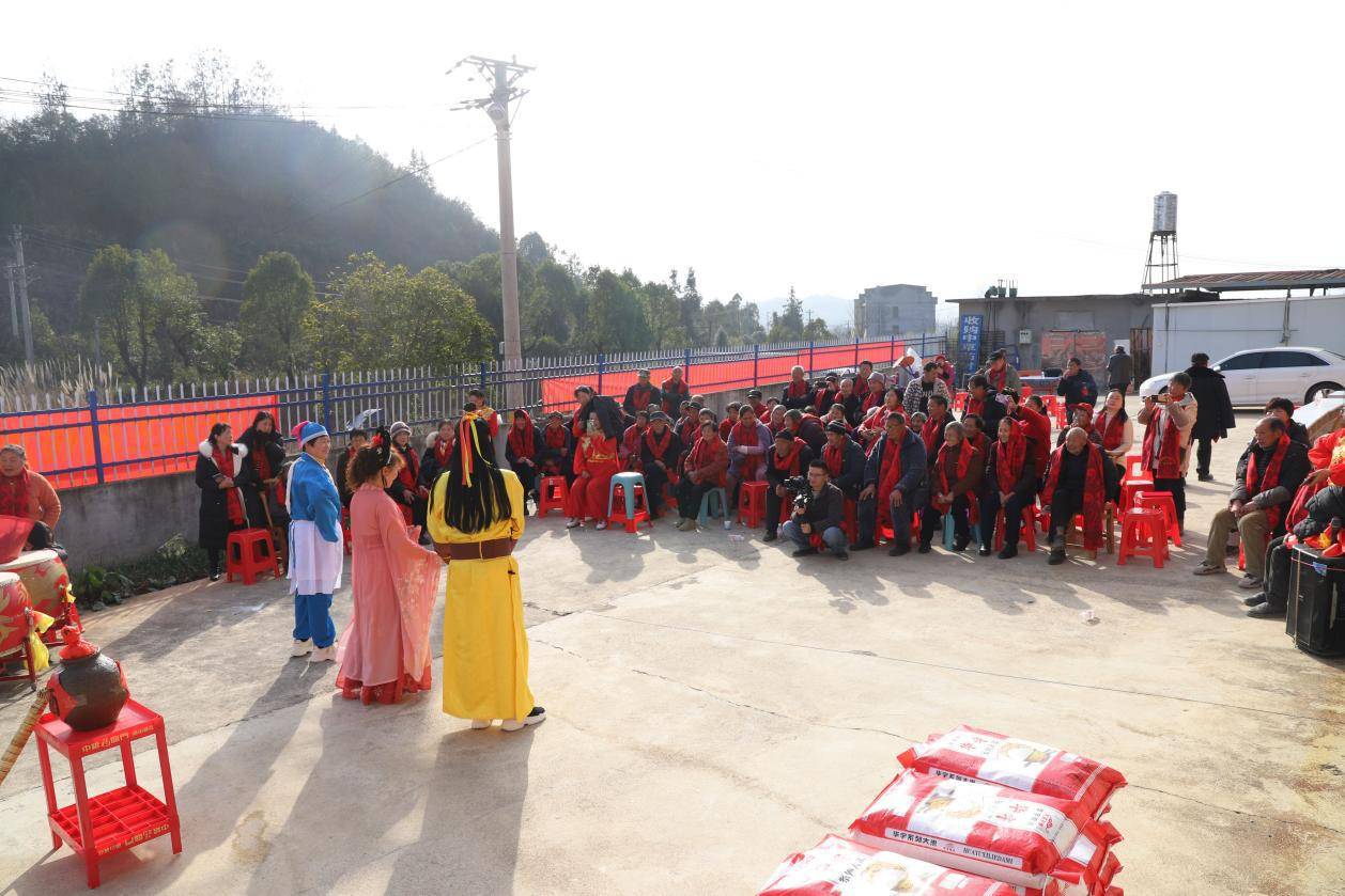 本次活动得到了乡贤熊细奎、姜建新先生等爱心人士的鼎力支持,现场给来宾赠送围巾130条,向村里60户困难户共计赠送大米60袋,食用油60壶。对村里10位残疾人送去慰问金共计3000元。该村乡村文艺队还为参会老人带来精彩的演出。