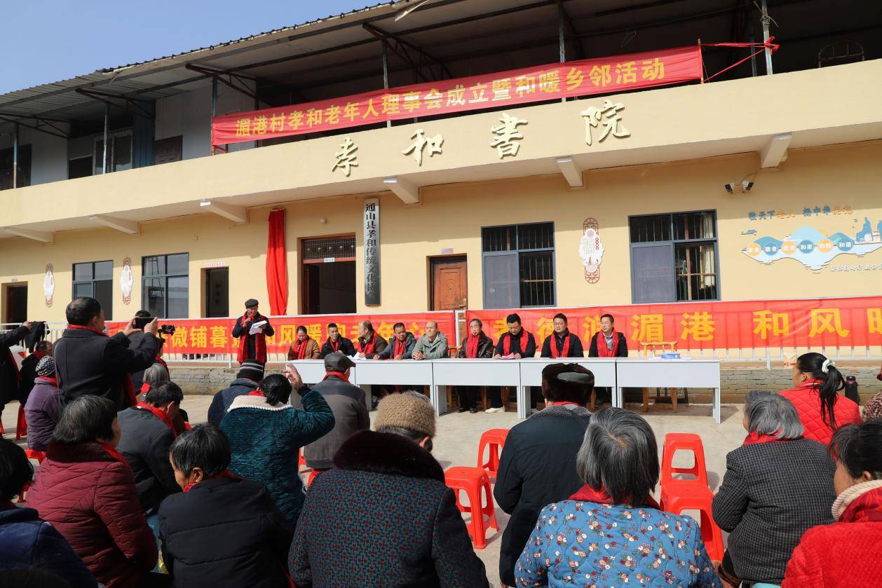 湖北日报讯 (通讯员 徐大发 )1月28日,通山县通羊镇湄港村姜家湾孝和传统文化协会办公楼孝和书院前一派节日气氛,该村老年人理事会揭牌。