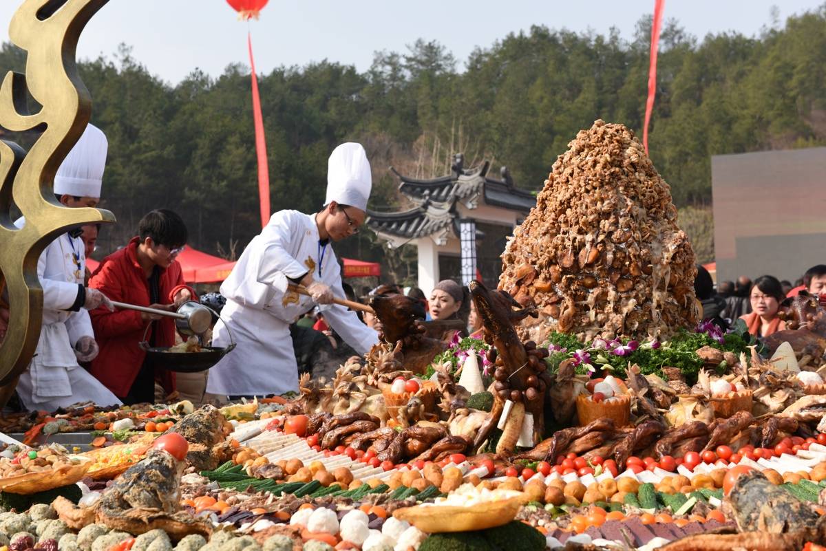 次日,当这套充满乡土气息的吊锅装置被推上舞台,瞬间震撼全场。火盆中炭火微红,吊锅里琳琅满目、热气蒸腾。与他们对阵的江西鹰潭,主打精致的“太极宴”。相比之下,罗田吊锅的粗犷、实在和强烈的画面感,赢得了更热烈的反响。