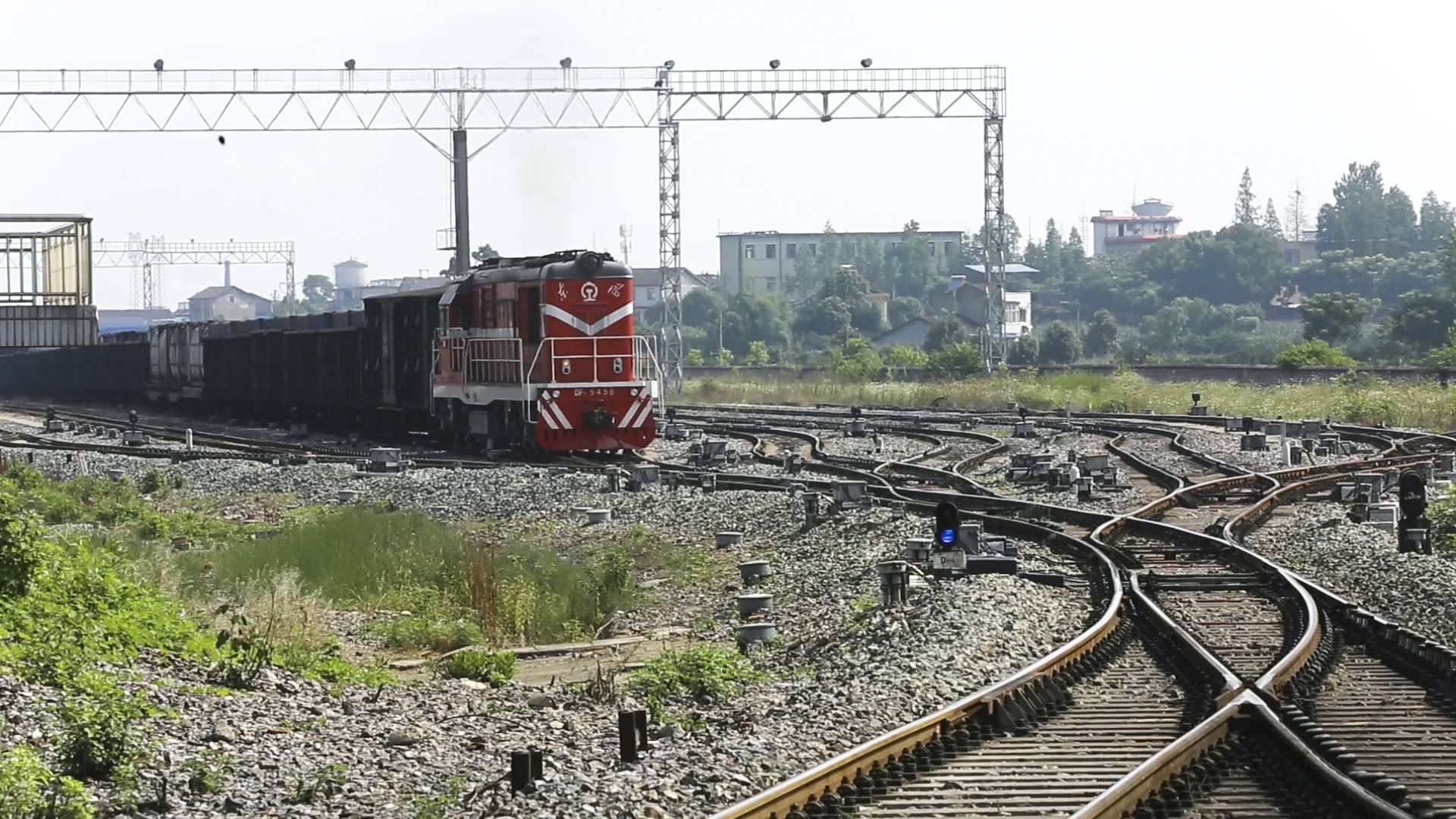 一列载满化肥的列车从枝江站驶出