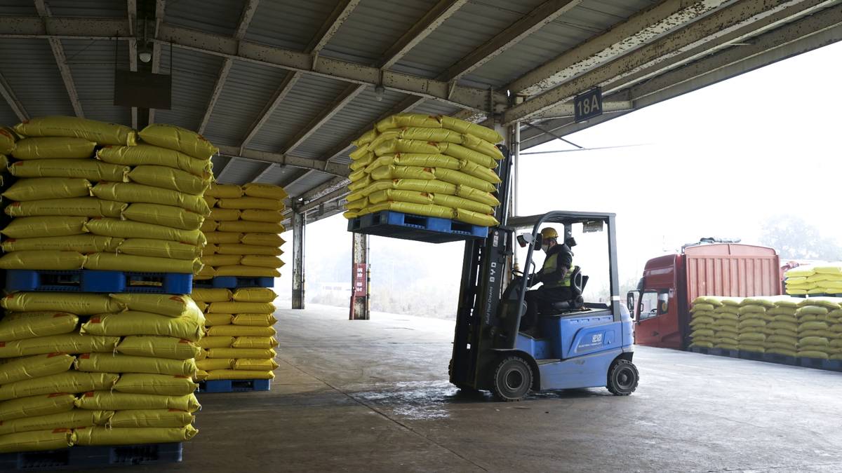 焦柳铁路枝城站货场正在转运化肥