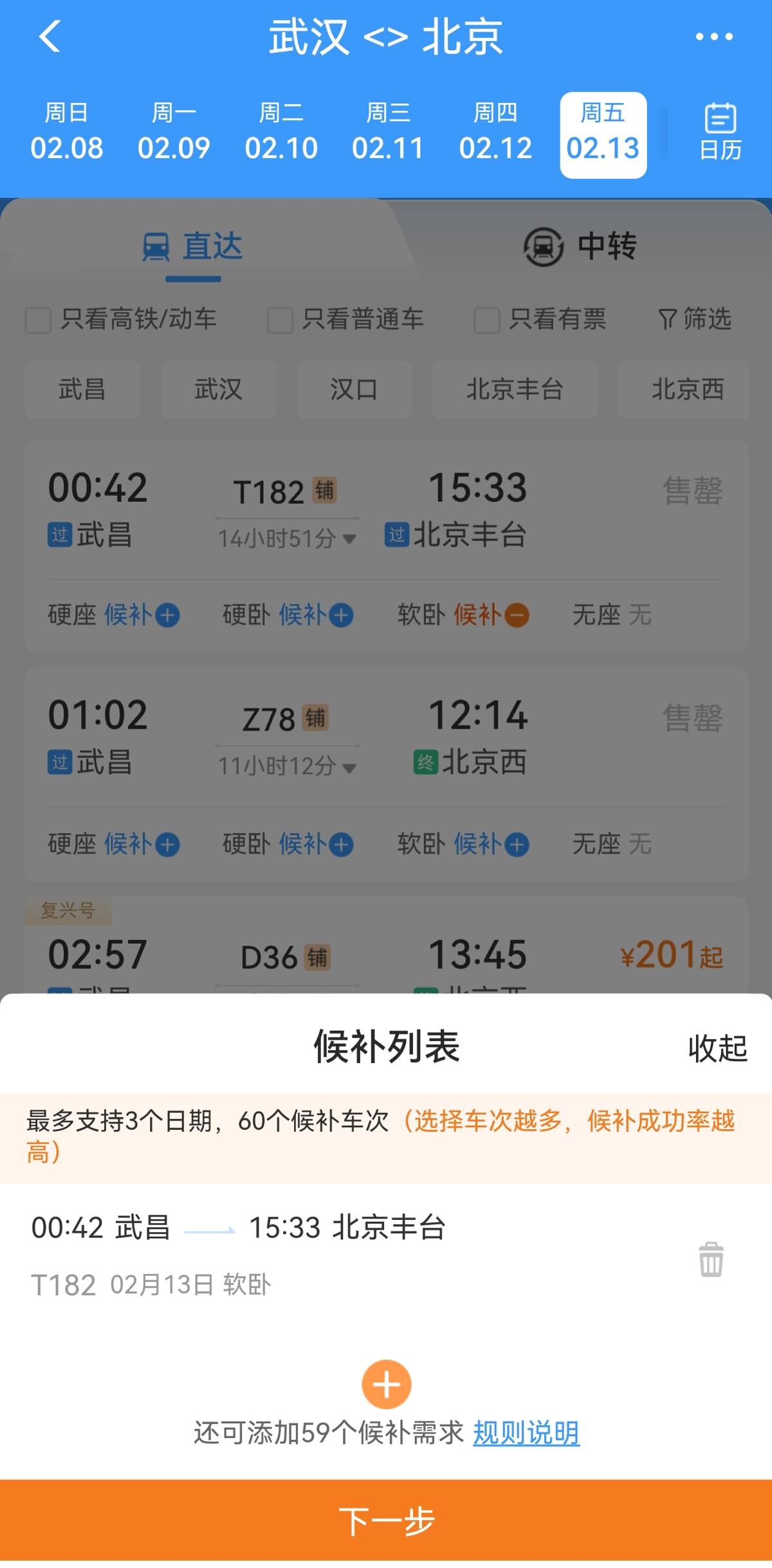 2、别只盯一趟车:多日期、多车次可大幅提升候补成功率