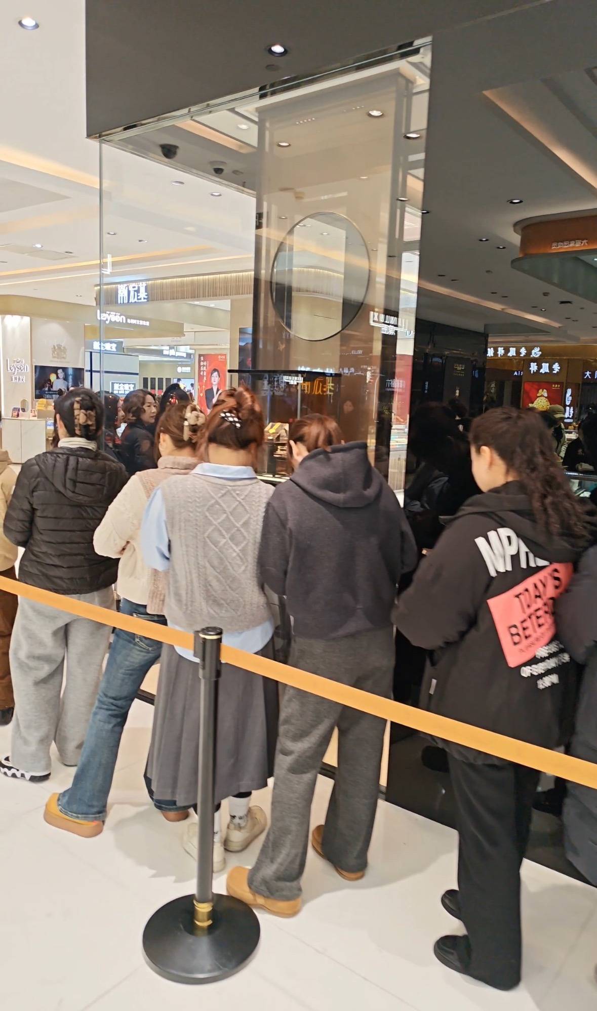 湖北日报讯(记者肖丽琼、通讯员徐静)近日,国内黄金消费市场热度持续攀升,创下新高。备受关注的老铺黄金线下门店更是人潮涌动,有顾客冒着严寒前来抢购。1月30日,武商MALL·世贸老铺黄金专柜再现抢购热潮,排队等待时间在1小时左右。