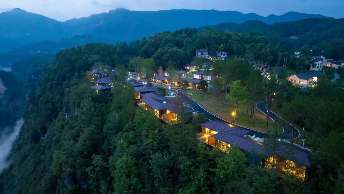 夜幕下,2025年落成的保康县九路寨云崖酒店美轮美奂。(湖北日报通讯员 邢忆星 摄)