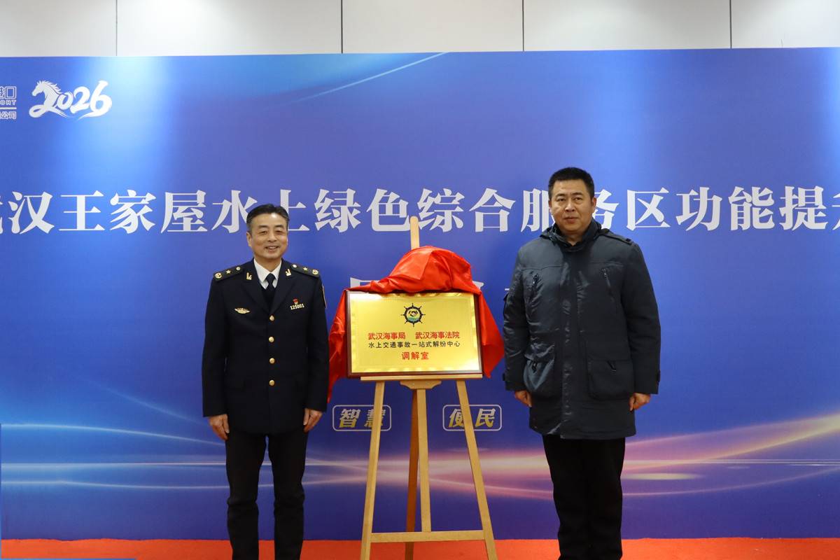 仪式现场,由武汉海事局与武汉海事法院联合设立的“水上交通事故一站式解纷中心调解室”正式揭牌。该调解室的设立,将为长江航运参与者提供专业、高效的法律调解服务,进一步优化武汉段航运法治环境,提升海事纠纷处理效率。