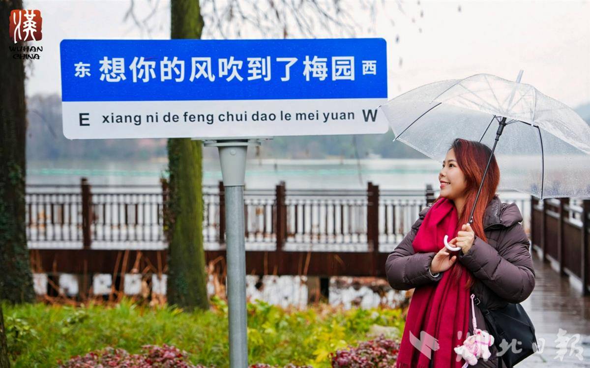 步入东湖梅园,数千株梅花凌寒绽放,暗香浮动,引得达人们纷纷举起相机。马来西亚的博主郭懳恩是第一次来到武汉,赏梅之余,她忍不住背起小时候在华人学校学习的诗句:“昔人已乘黄鹤去,此地空余黄鹤楼。这趟旅程让我亲眼看到了课本里的武汉,比想象中更加动人。”
