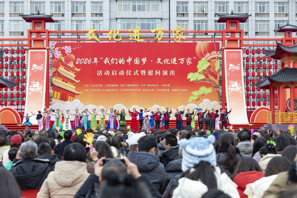 湖北日报讯(记者海冰、鲁腾、通讯员陈绪开、王法钧)2月1日,由中央宣传部、文化和旅游部、国家广播电视总局、中央广播电视总台、中国文联联合主办的2026年“我们的中国梦——文化进万家”活动启动仪式暨慰问演出,在湖北省恩施州宣恩县举行。