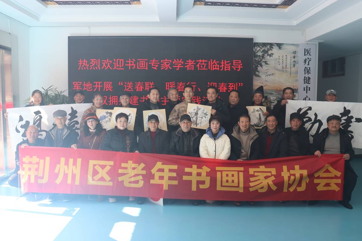 近日,湖北省军区荆州离职干部休养所营区内墨香飘飘、情意暖暖,一场“送春联、暖春行、迎春到”活动持续开展。部队工作人员和地方书画家一起开展文化共建,让军魂在文墨中淬炼,让温情在寒冬里绽放。