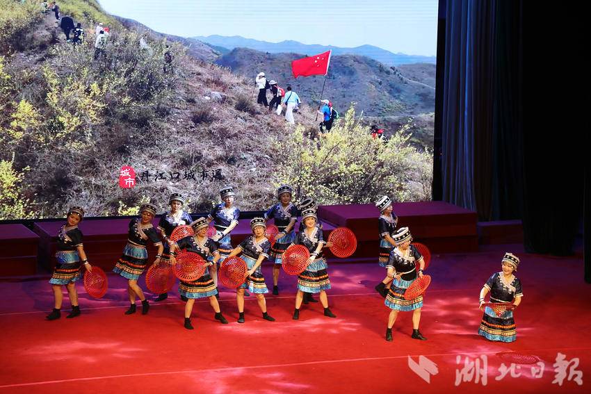 20个节目,近两个小时的演出高潮迭起、精彩纷呈,一个个特色节目轮番登场,让现场掌声不断。歌舞《盛世中华》气势恢宏,激昂的旋律搭配磅礴的舞姿,奏响家国繁荣的时代乐章;独唱《幸福山歌》满含浓郁民族风情,质朴的歌声娓娓诉说着群众对美好生活的热切向往;经典曲目《大地飞歌》经全新演绎,旋律悠扬、感染力十足,传递出一往无前的奋进力量。